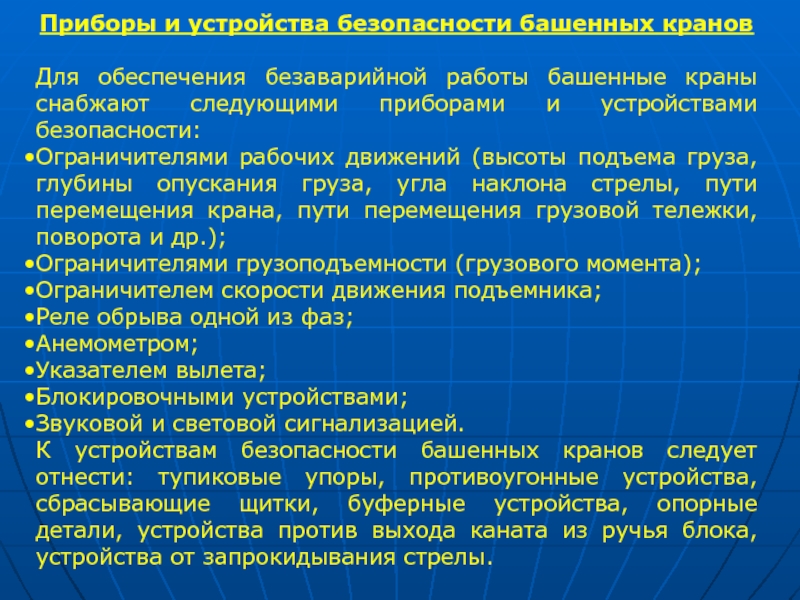 Слайд 34Приборы и устройства безопасности башенных кранов