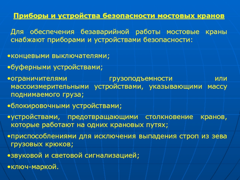 Слайд 16Приборы и устройства безопасности мостовых кранов