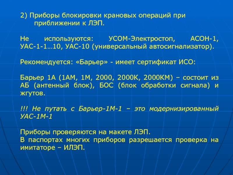 Эти приборы реализуют функции защиты крана от перегрузки, от столкновений с различными препятствиями при работе в стесненных условиях (функции координатной защиты) и защиты от опасного приближения к линии электропередачи.