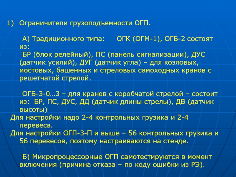 1) Ограничители грузоподъемности ОГП (ОГМ)