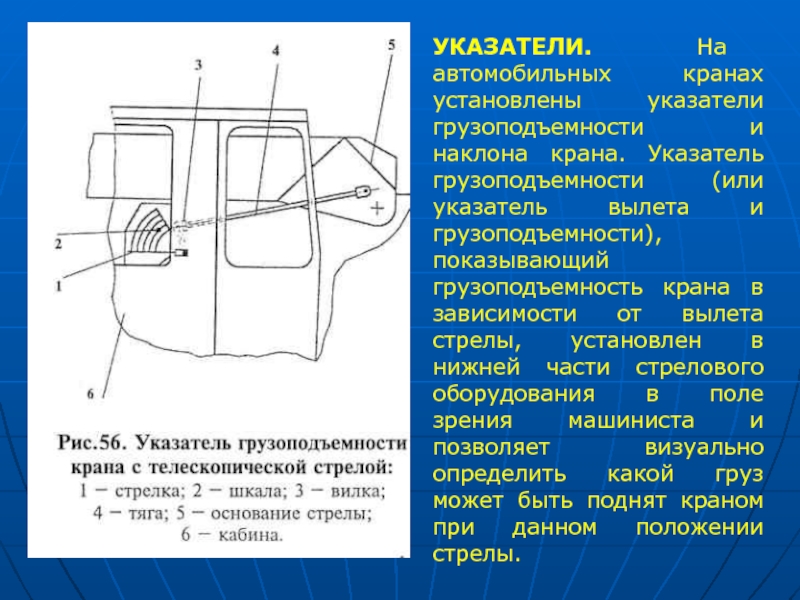 Слайд 31УКАЗАТЕЛИ. На автомобильных кранах установлены указатели грузоподъемности и наклона крана. Указатель