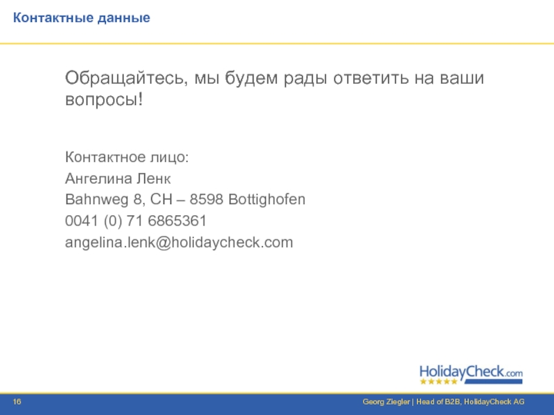 T +41 (0)71 686 9000 | F +41 (0)71 686 9009 | info@holidaycheck.ru