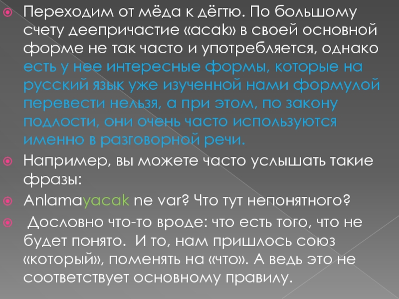 Слайд 12Не забудем и про то, что турецкие деепричастия очень любят субстантивироваться.