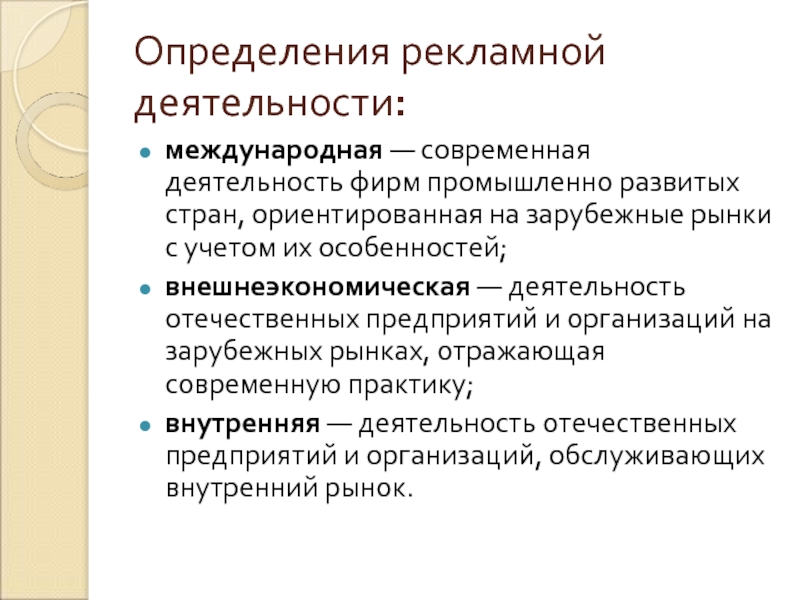Слайд 3Определения рекламной деятельности: