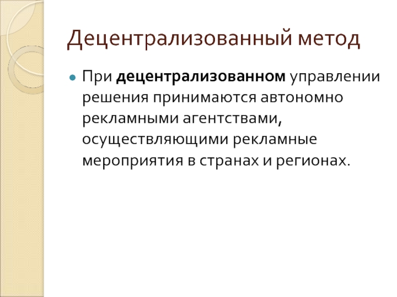 При децентрализованном управлении решения принимаются автономно  рекламными агентствами, осуществляющими рекламные мероприятия в