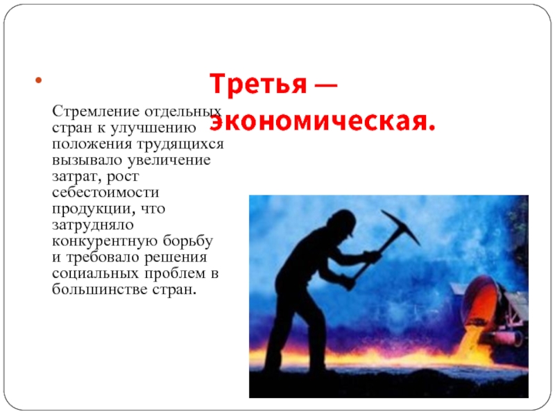 затрат, рост себестоимости продукции, что затрудняло конкурентную борьбу и требовало решения социальных проблем в большинстве стран.