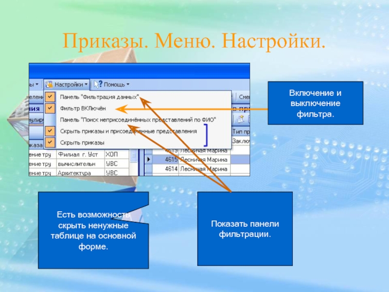 Показать панели фильтрации.