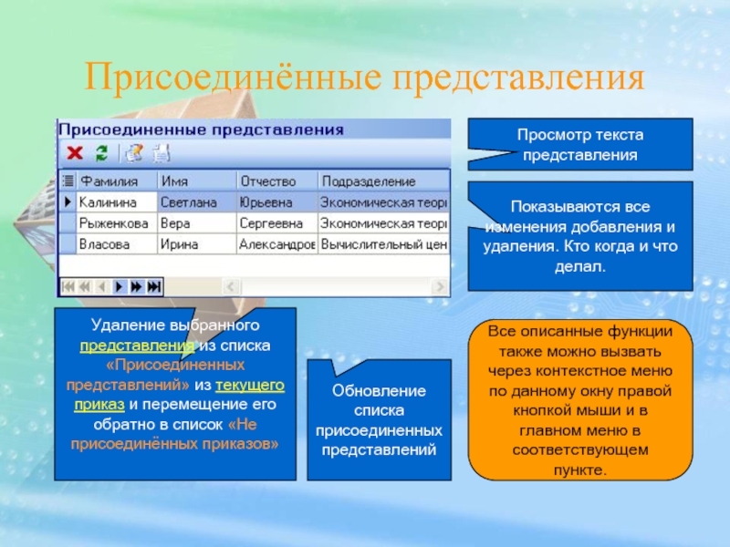 Обновление списка присоединенных представлений