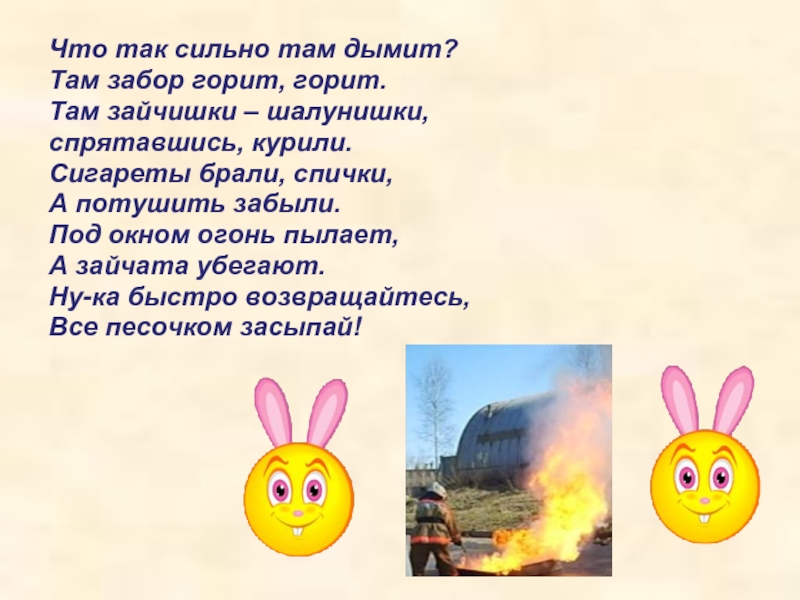 В личном сборнике стихов, совсем недавно, родилась пьеска на тему пожарной безопасности.
