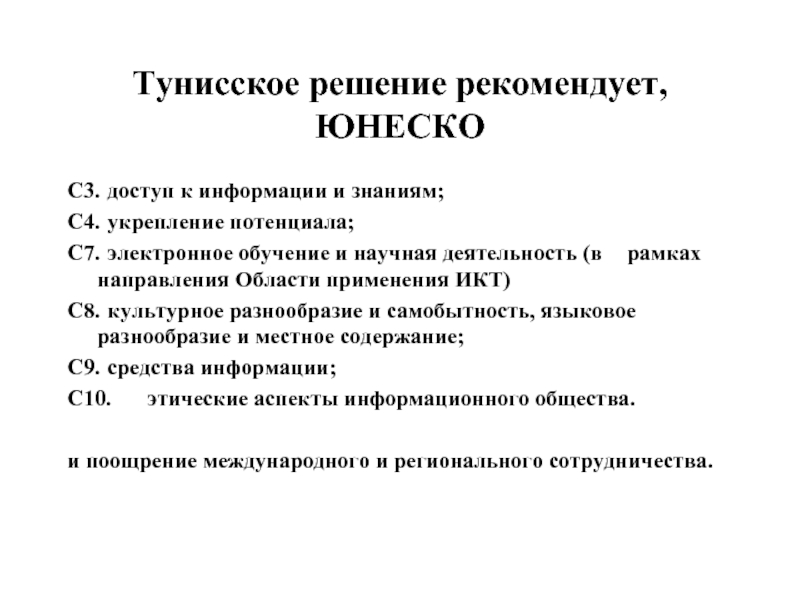 Слайд 9Тунисское решение рекомендует, ЮНЕСКО