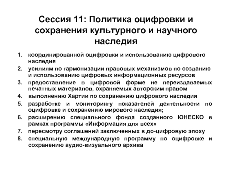 Слайд 6Сессия 11: Политика оцифровки и сохранения культурного и научного наследия