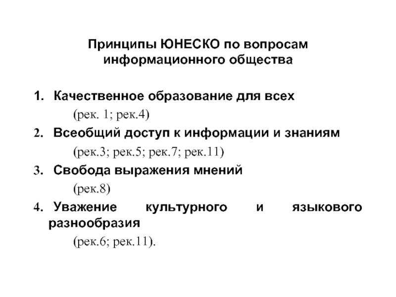Слайд 2Принципы ЮНЕСКО по вопросам информационного общества