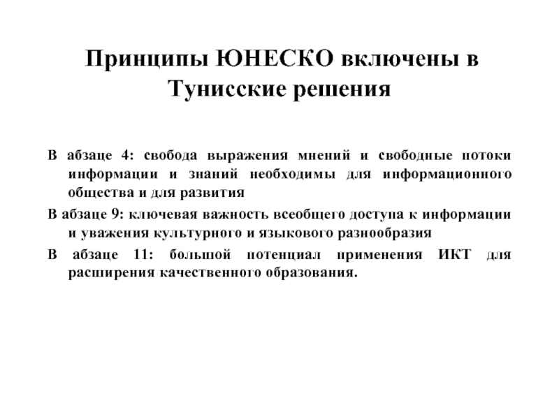 Слайд 8 Принципы ЮНЕСКО включены в Тунисские решения