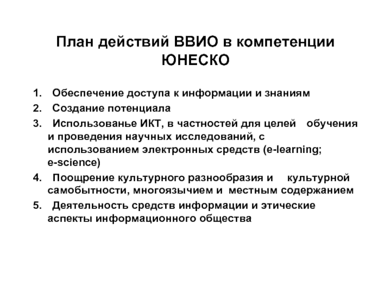 Слайд 3План действий ВВИО в компетенции ЮНЕСКО