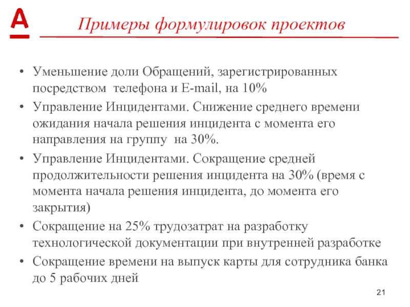 Список возможных Проектов                 с приоритетами по «эффективности»