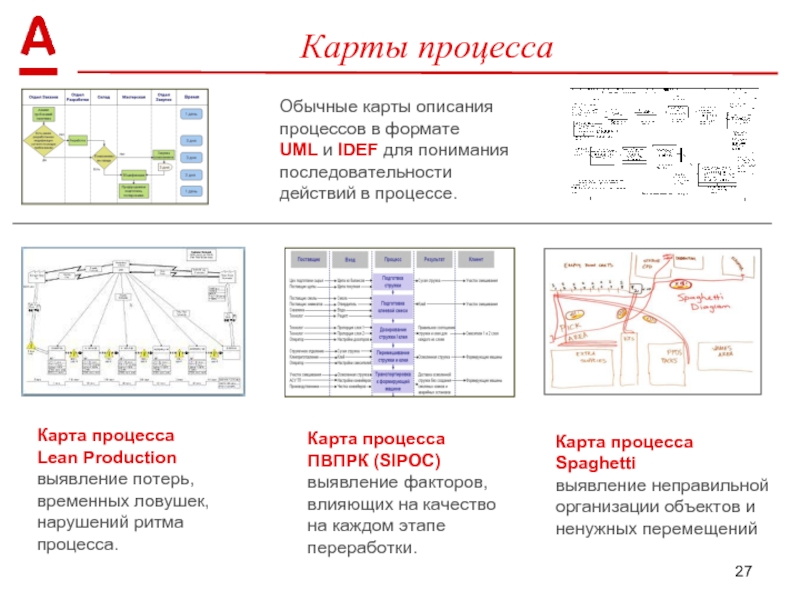 Обычные карты описания процессов в формате      UML и IDEF для понимания последовательности действий в процессе.