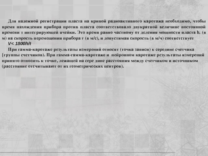Слайд 20Для надежной регистрации пласта на кривой радиоактивного каротажа необходимо, чтобы время
