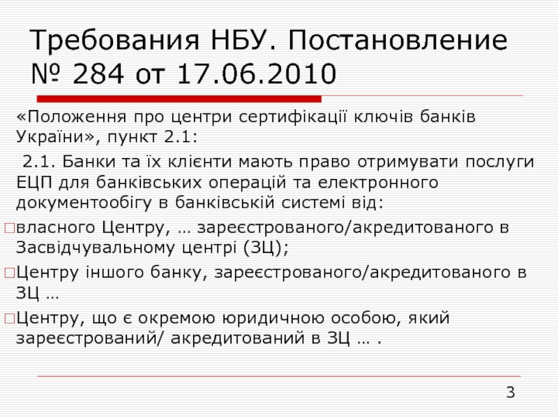 «Положення про центри сертифікації ключів банків України», затвердженого постановою Правління Національного банку України 17.06.2010 №284.