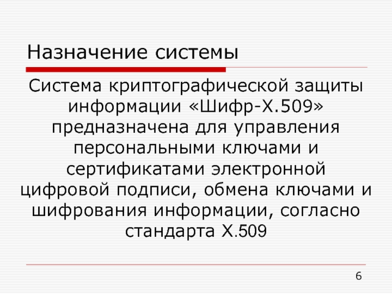 Система криптографической защиты информации «Шифр-Х.509» предназначена для управления персональными ключами