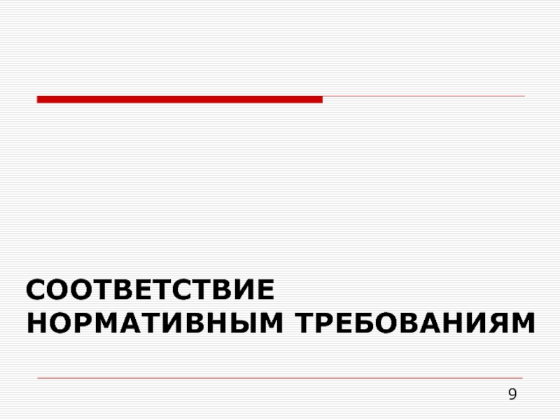 Слайд 9СООТВЕТСТВИЕ НОРМАТИВНЫМ ТРЕБОВАНИЯМ