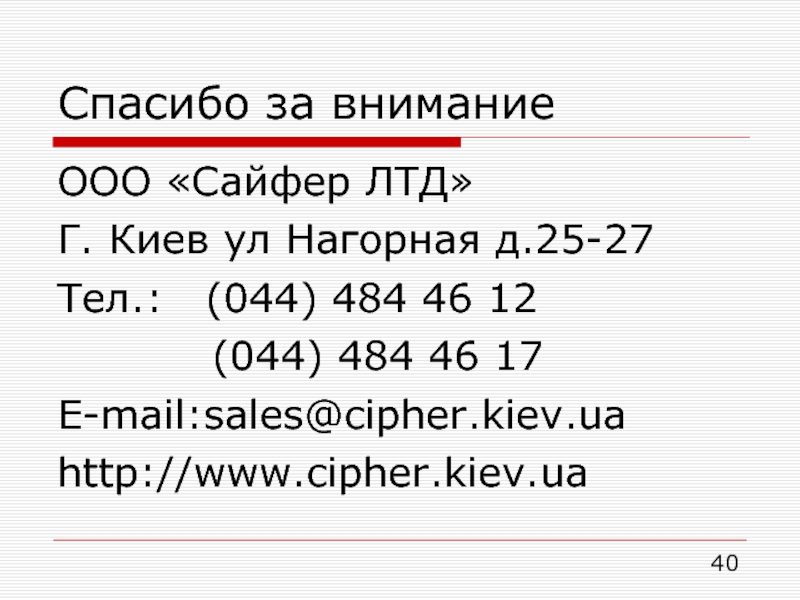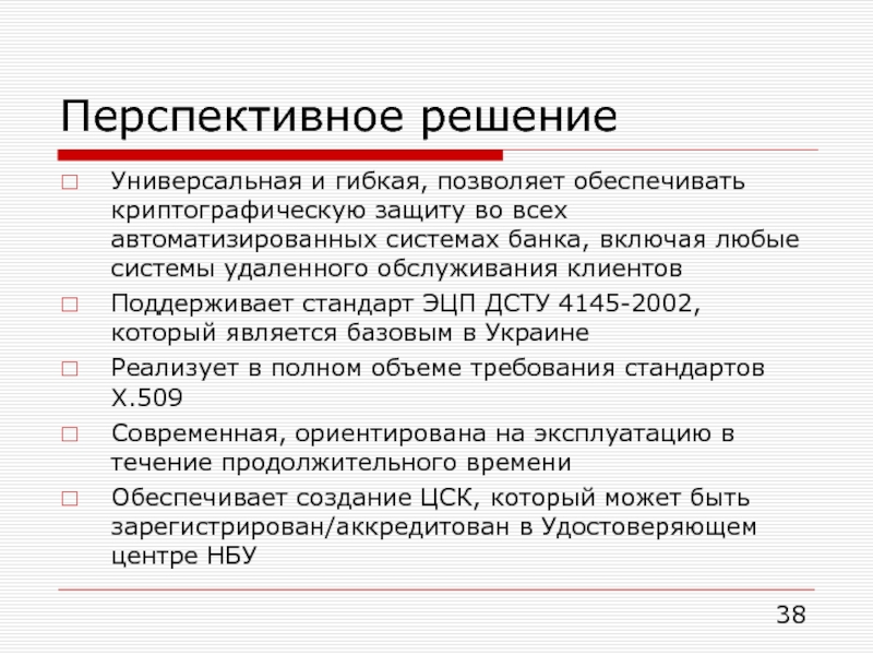 Поддерживает стандарт ЭЦП ДСТУ 4145-2002, который является базовым в Украине