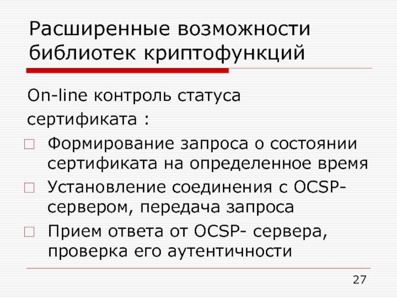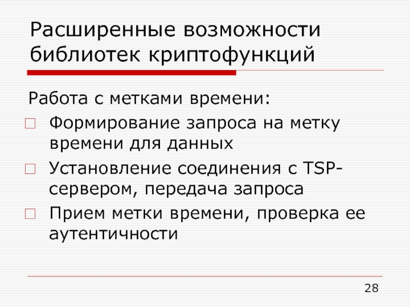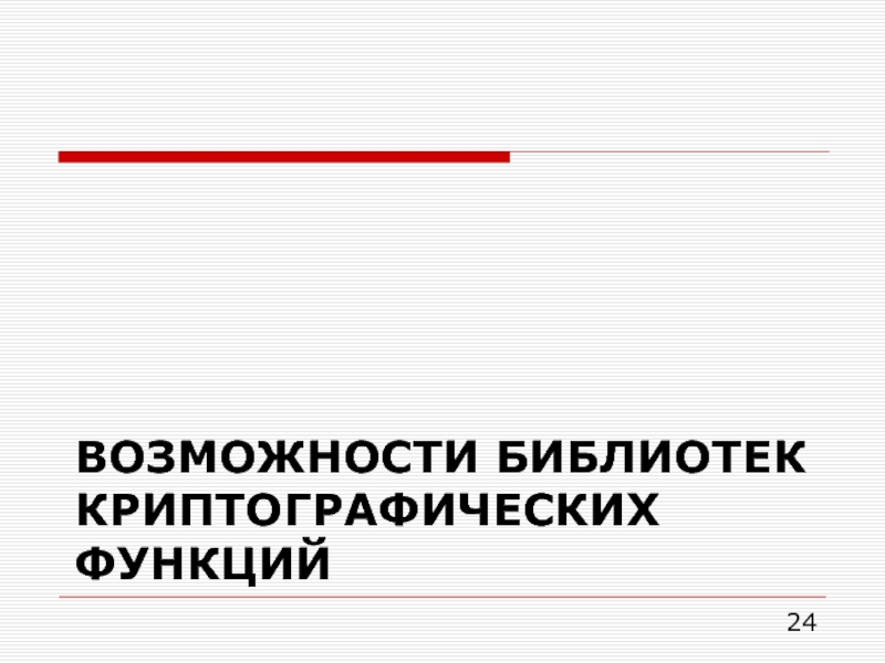 Слайд 24ВОЗМОЖНОСТИ БИБЛИОТЕК КРИПТОГРАФИЧЕСКИХ ФУНКЦИЙ