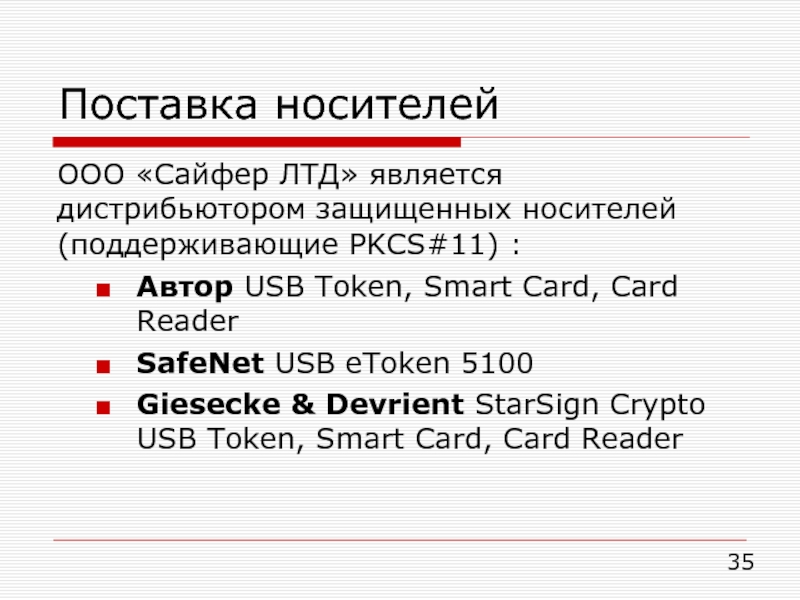 ООО «Сайфер ЛТД» является дистрибьютором защищенных носителей (поддерживающие PKCS#11) :