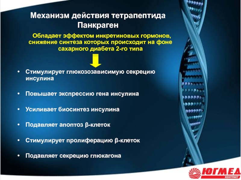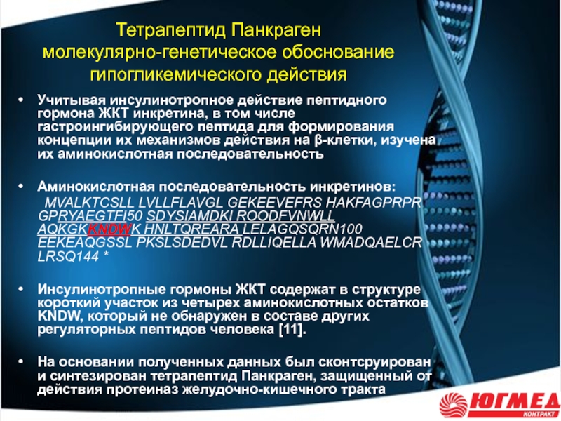Слайд 5Тетрапептид Панкраген молекулярно-генетическое обоснование гипогликемического действия