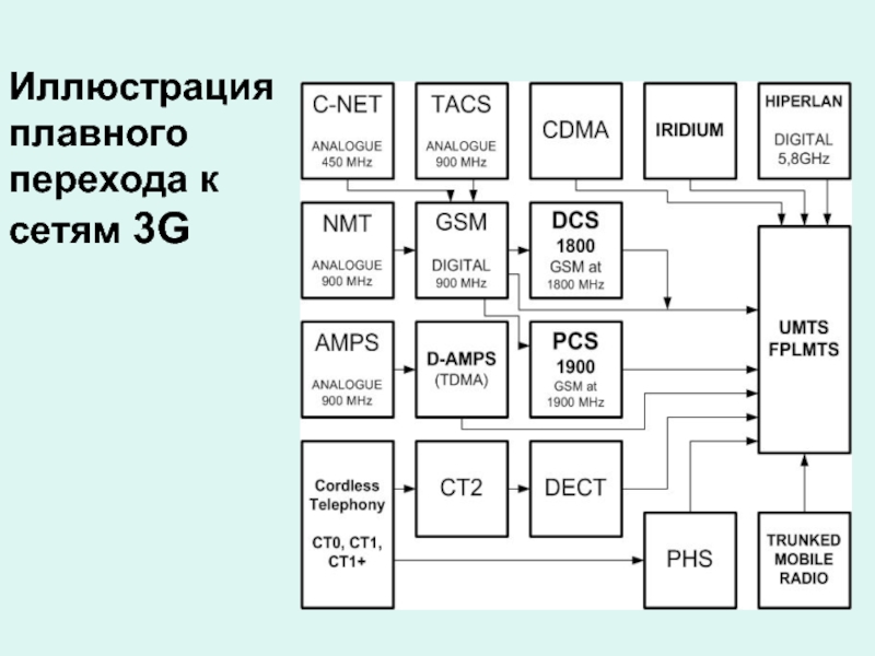 на технологии коммутации каналов с использованием технологий разделения каналов TDMA/FDMA, CDMA.
