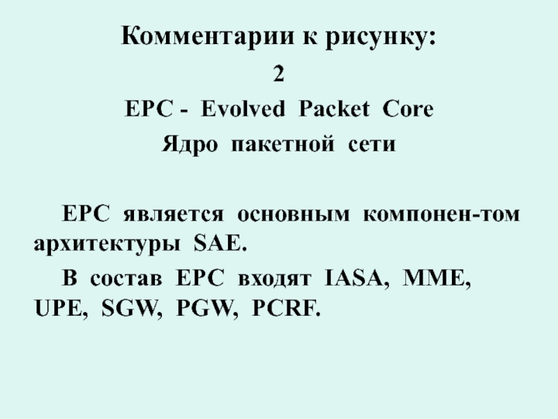 В состав ЕРС входят IASA, ММЕ, UPE, SGW, PGW, PCRF.