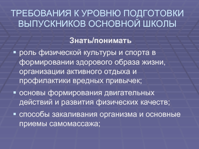 Слайд 29ТРЕБОВАНИЯ К УРОВНЮ ПОДГОТОВКИ