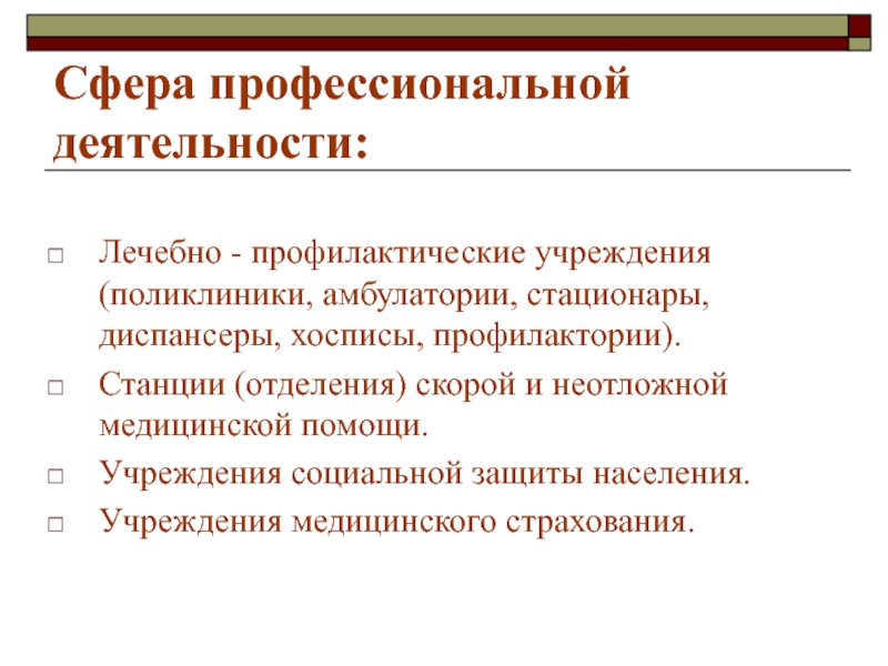 Лечебно - профилактические учреждения (поликлиники, амбулатории, стационары, диспансеры, хосписы,