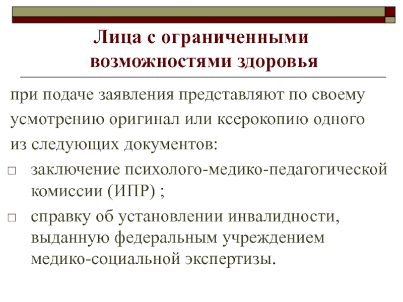 заключение психолого-медико-педагогической комиссии (ИПР) ;