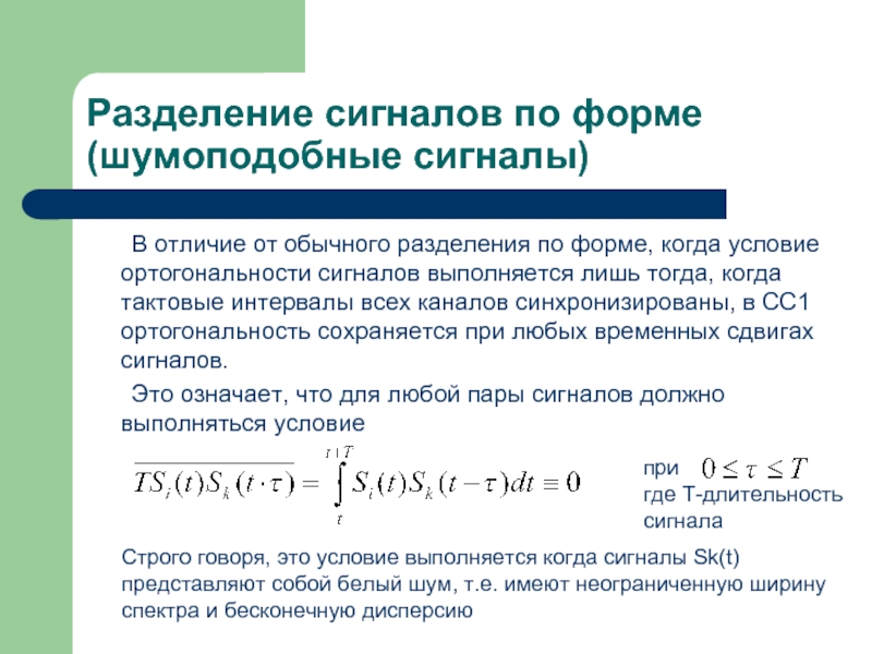 Строго говоря, это условие выполняется когда сигналы Sk(t) представляют собой белый шум, т.е. имеют неограниченную ширину спектра и бесконечную дисперсию