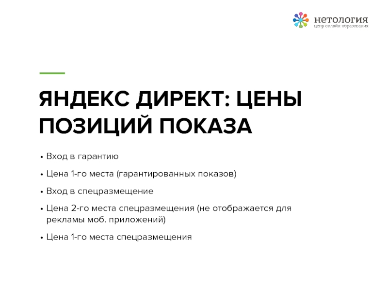Слайд 45ЯНДЕКС ДИРЕКТ: ЦЕНЫ ПОЗИЦИЙ ПОКАЗА