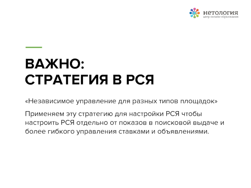 Слайд 24ВАЖНО: СТРАТЕГИЯ В РСЯ