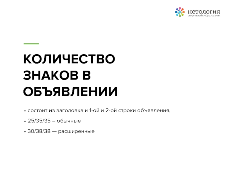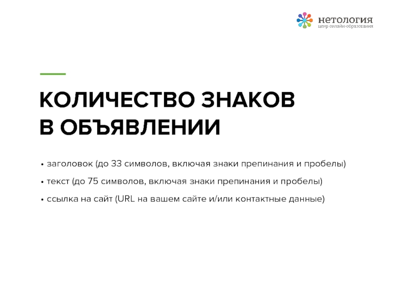 Слайд 32КОЛИЧЕСТВО ЗНАКОВ В ОБЪЯВЛЕНИИ