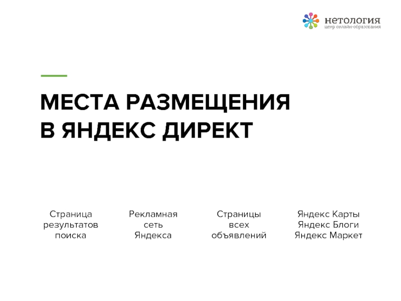 Слайд 7МЕСТА РАЗМЕЩЕНИЯ В ЯНДЕКС ДИРЕКТ