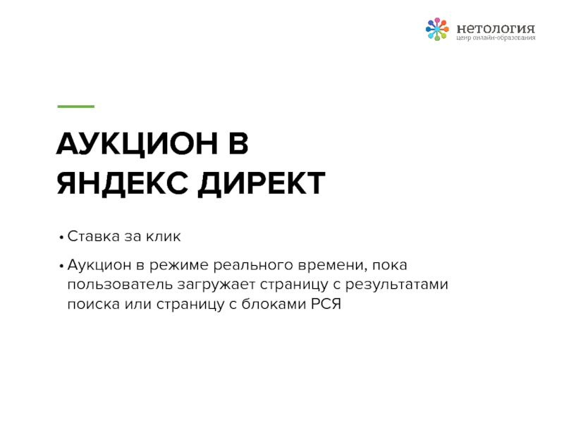 Слайд 47АУКЦИОН В ЯНДЕКС ДИРЕКТ