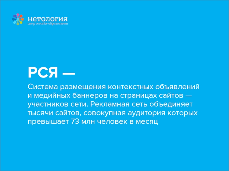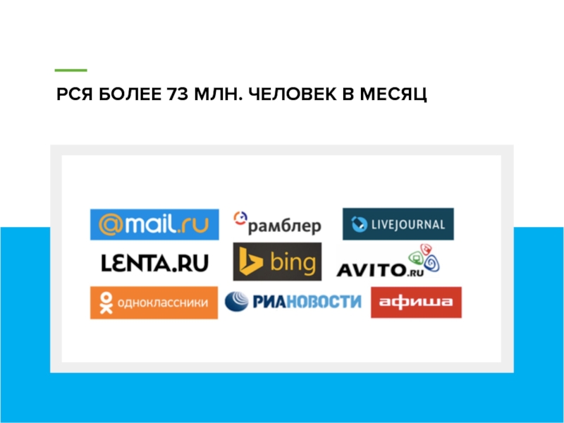 Слайд 20РСЯ БОЛЕЕ 73 МЛН. ЧЕЛОВЕК В МЕСЯЦ