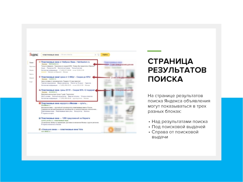 На странице результатов поиска Яндекса объявления могут показываться в трех разных