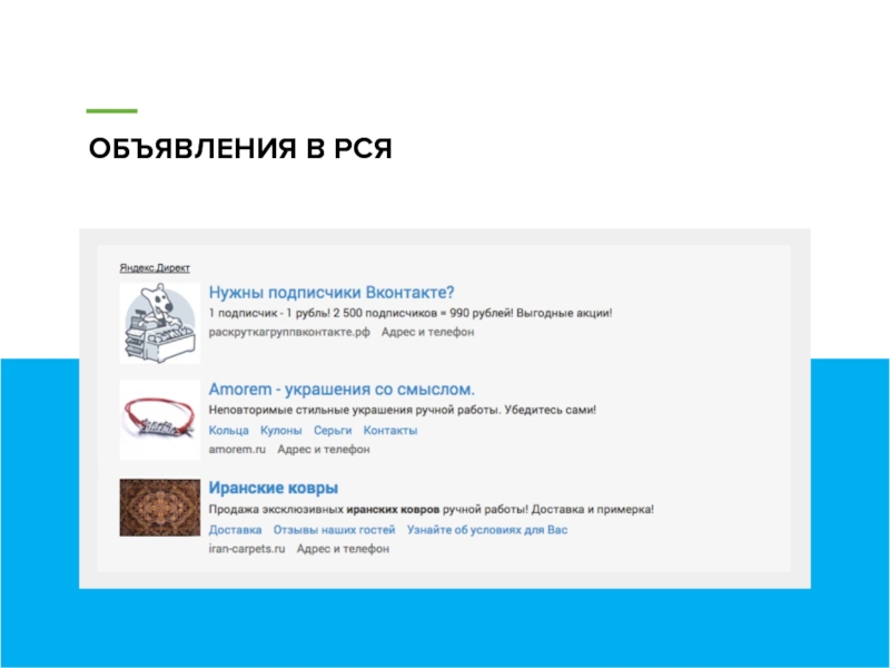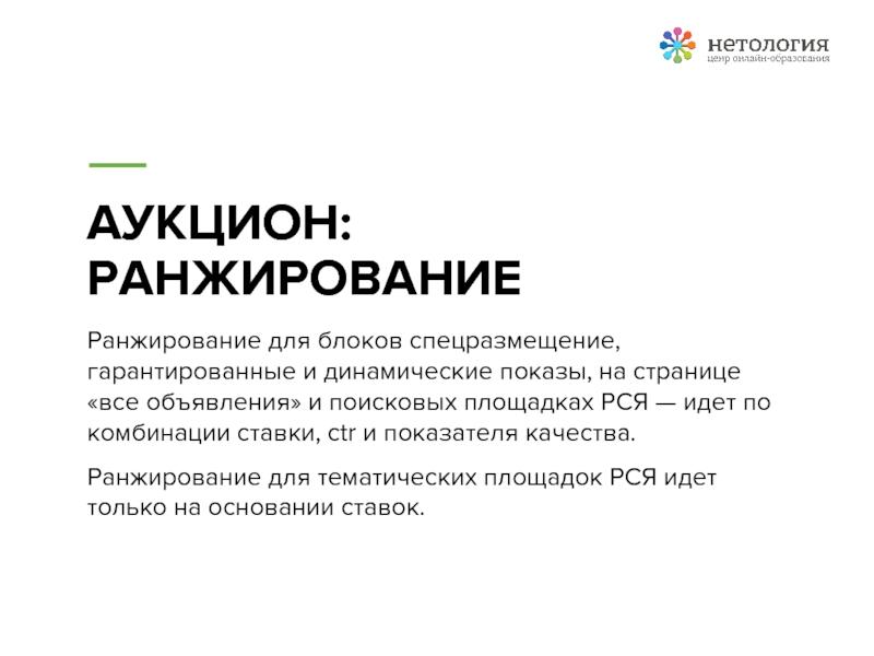 GSP аукцион —> динамические показы, страница «все объявления» и тематические площадки РСЯ
