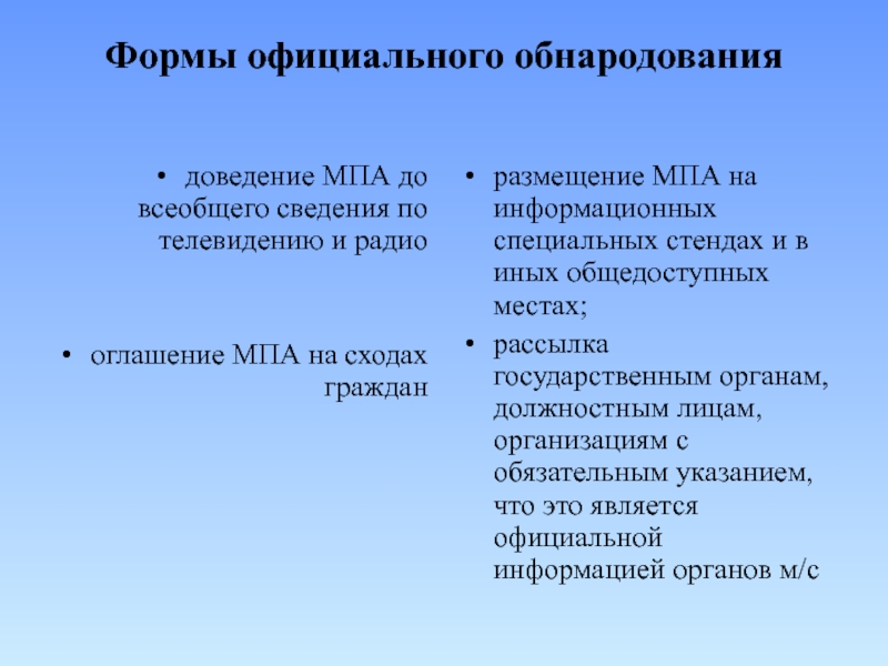 размещение МПА на информационных специальных стендах и в иных общедоступных местах;