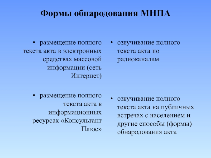 озвучивание полного текста акта на публичных встречах с населением и другие способы (формы) обнародования акта