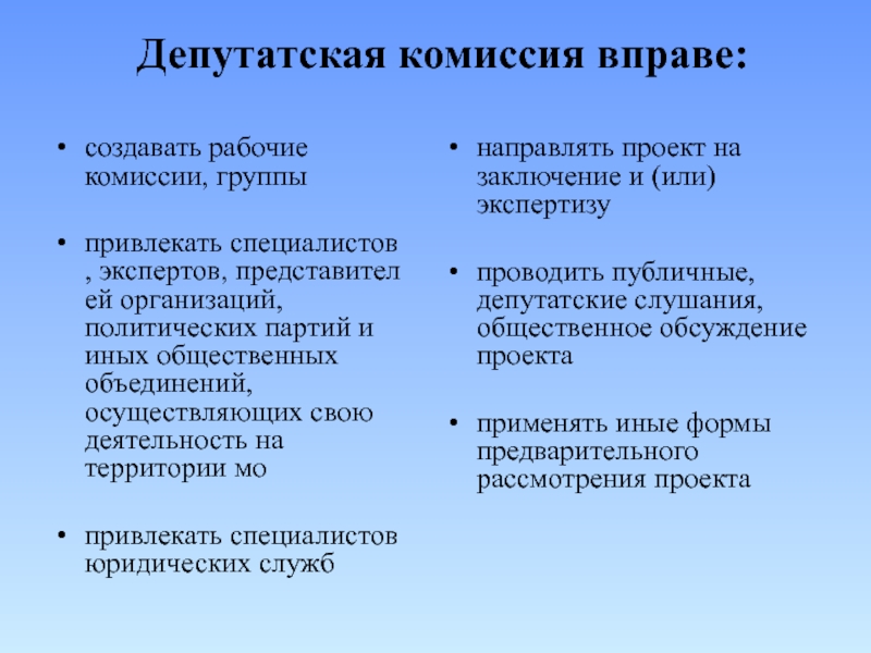 проводить публичные, депутатские слушания, общественное обсуждение проекта