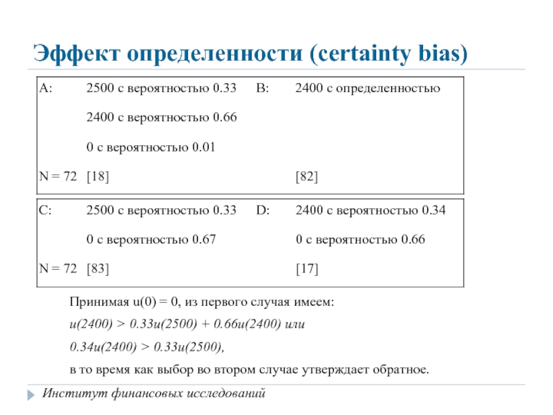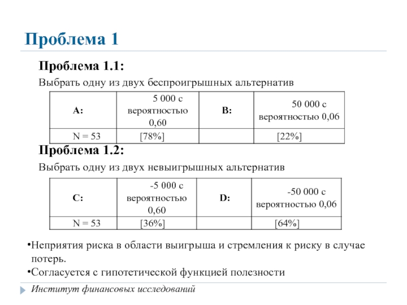 Неприятия риска в области выигрыша и стремления к риску в случае потерь.