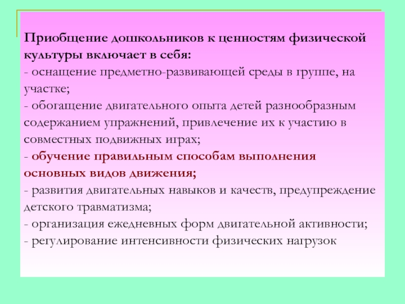 - приобщение детей к миру физической культуры.
