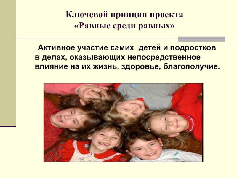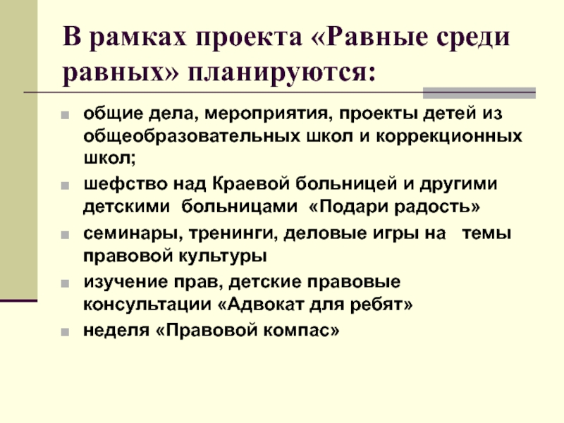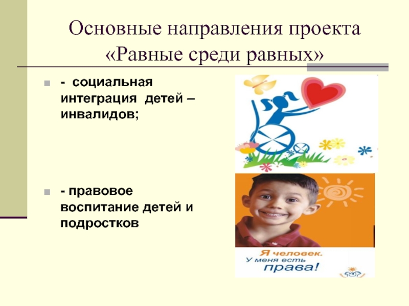 «Равные среди равных» (социальная интеграция детей – инвалидов, правовое воспитание детей и подростков);