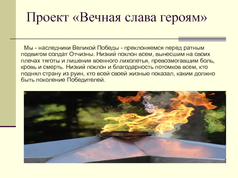 «Вечная слава героям» - мероприятия, посвященные 65 – летию Победы в Великой Отечественной войне;