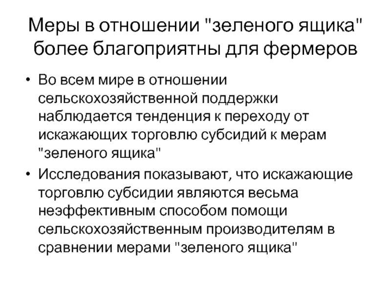 Слайд 33Меры в отношении "зеленого ящика" более благоприятны для фермеров
